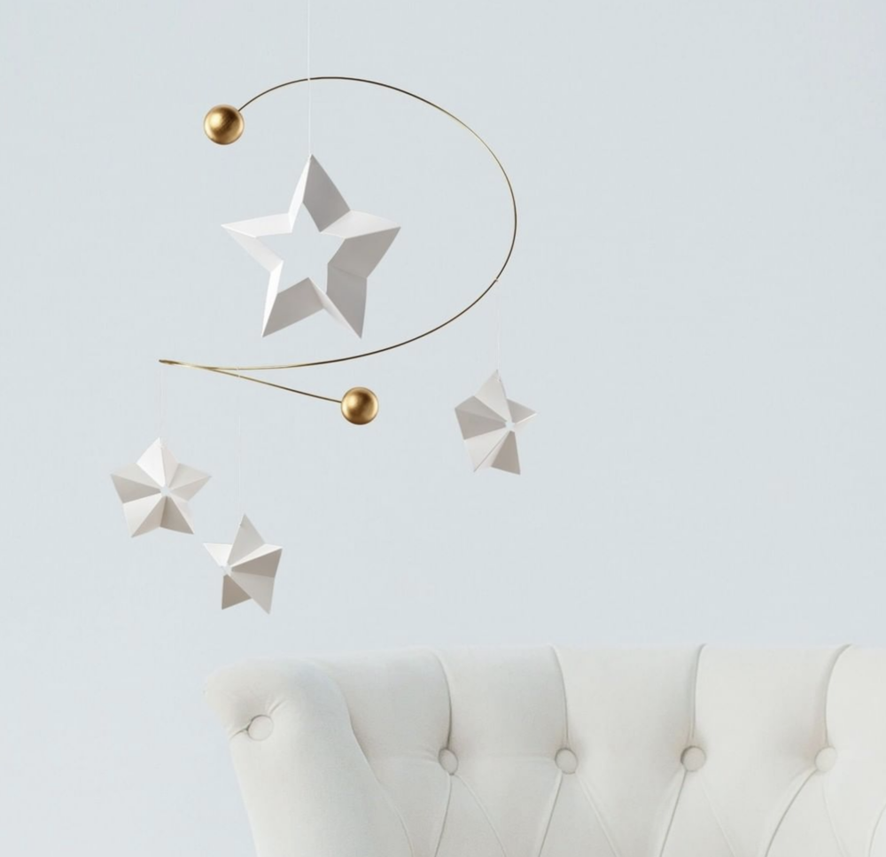 - 모빌 무게는 비교적 가벼운 편으로 일반적인 핀이나 옷핀, 압정 등으로 벽지에 쉽게 고정이 가능합니다.