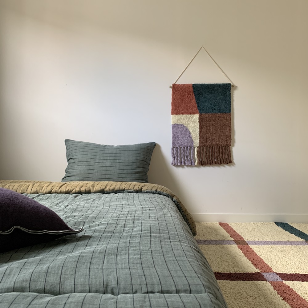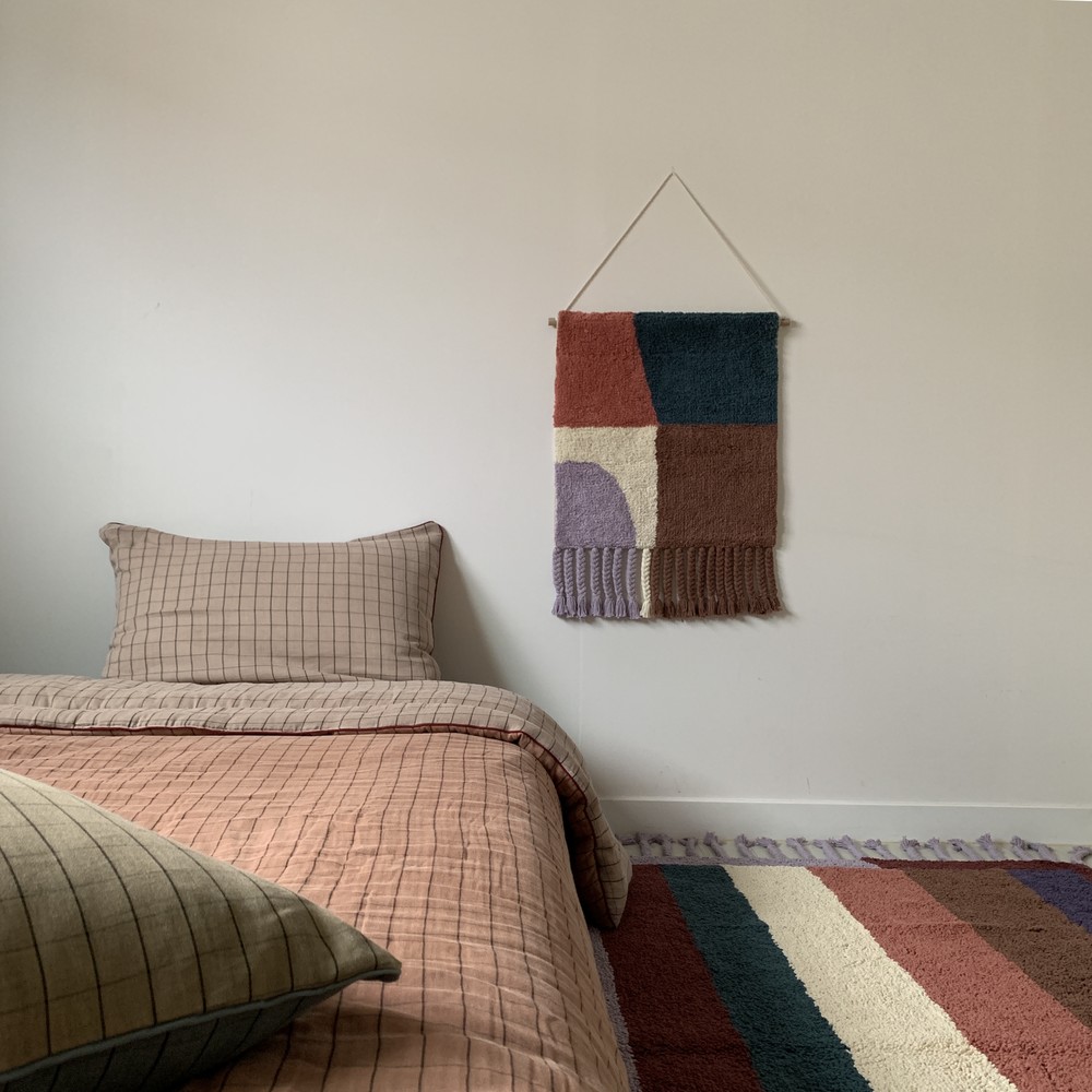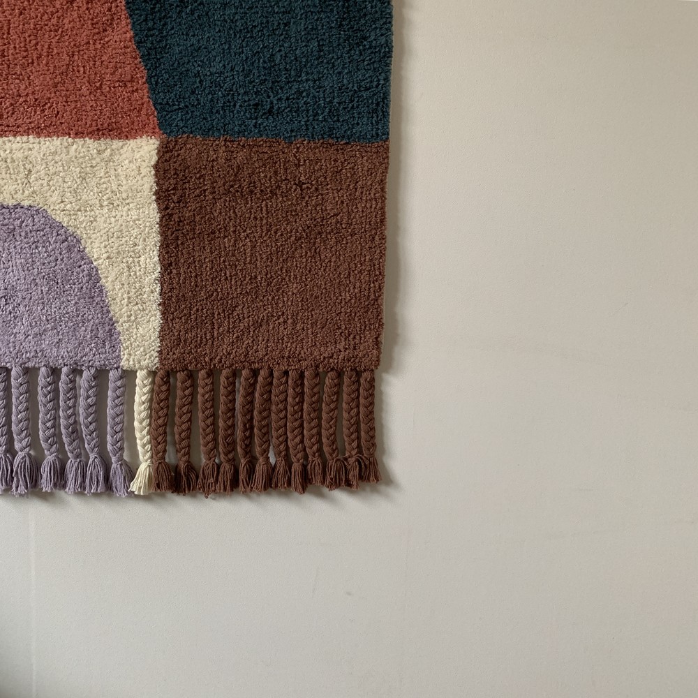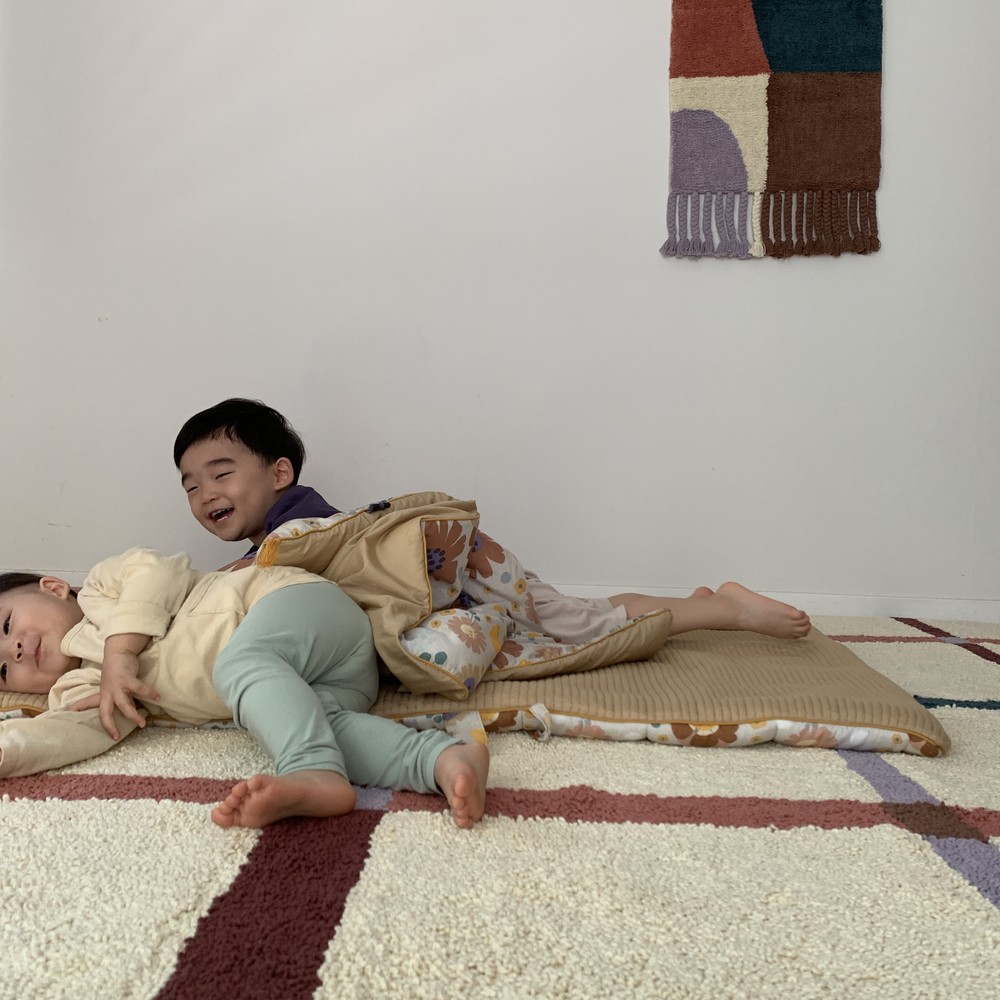 학창시절 쉬는 시간에 한번 쯤 해보신 기억이 있으실텐데 혹시 기억나세요? 사방치기(Hopscotch)는 이번 월행잉의 모티프가 되어주었어요. 아름다운 컬러의 조합으로 추억을 회상하며 뛰놀았던 기억을 회상하니 감회가 새롭더라구요. 월행잉 Hopscotch는 특별히 아래에 귀여운 태슬들도 함께 달아주었어요. 밋밋한 벽면은 보슬보슬한 파일들과 태슬로 좀 더 따뜻해질거에요.