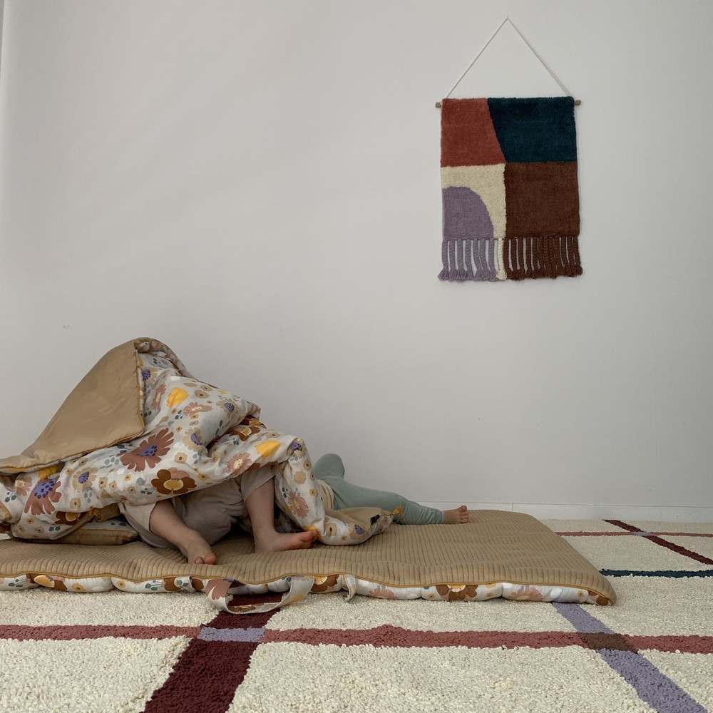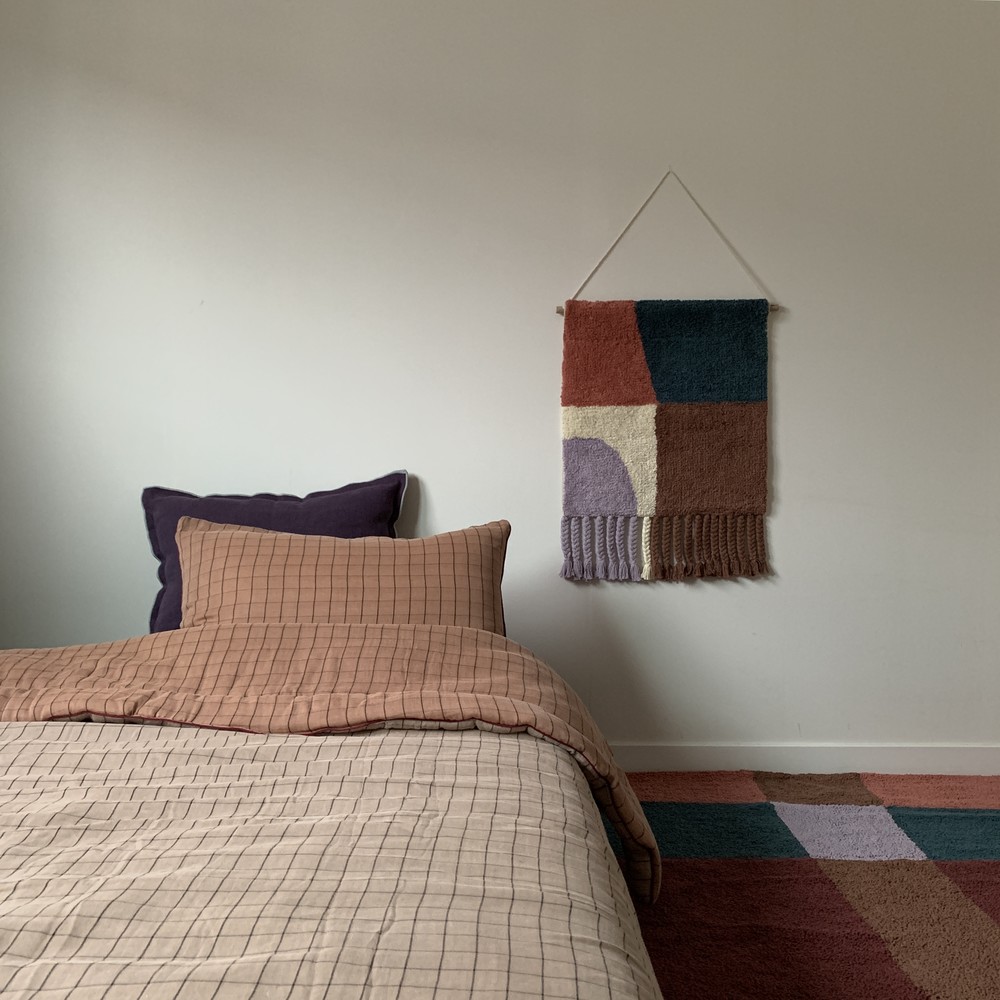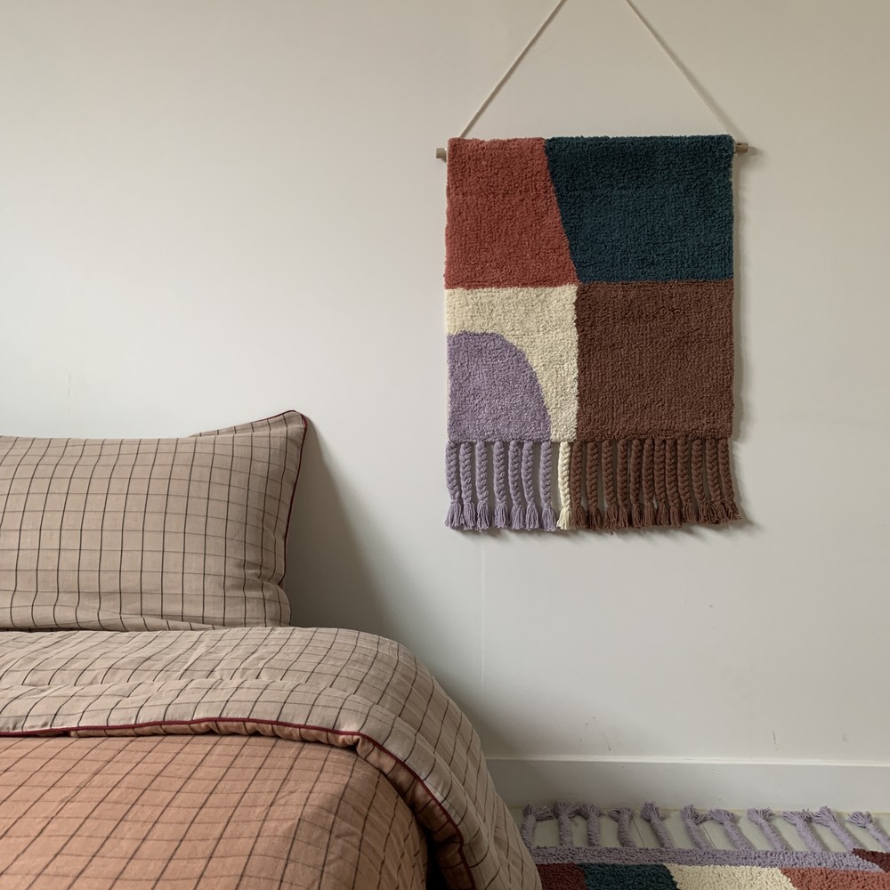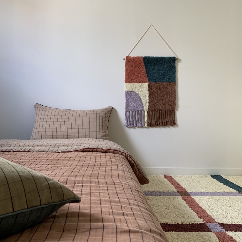 학창시절 쉬는 시간에 한번 쯤 해보신 기억이 있으실텐데 혹시 기억나세요? 사방치기(Hopscotch)는 이번 월행잉의 모티프가 되어주었어요. 아름다운 컬러의 조합으로 추억을 회상하며 뛰놀았던 기억을 회상하니 감회가 새롭더라구요. 월행잉 Hopscotch는 특별히 아래에 귀여운 태슬들도 함께 달아주었어요. 밋밋한 벽면은 보슬보슬한 파일들과 태슬로 좀 더 따뜻해질거에요.