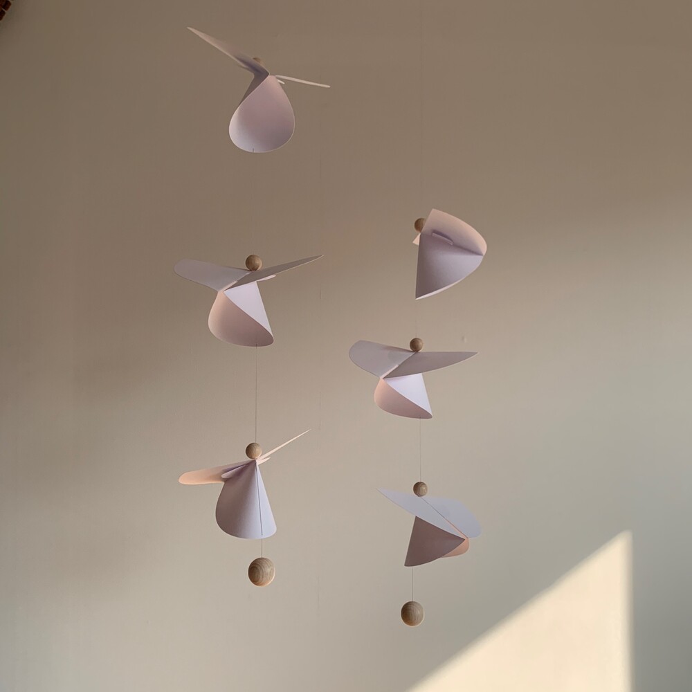 - 미세한 기류에도 잘 움직이도록 제작되어 급격한 이동이나 충격은 피해주시고, 설치 전후에 모빌이 추락하지 않도록 세심히 다루어 주세요.