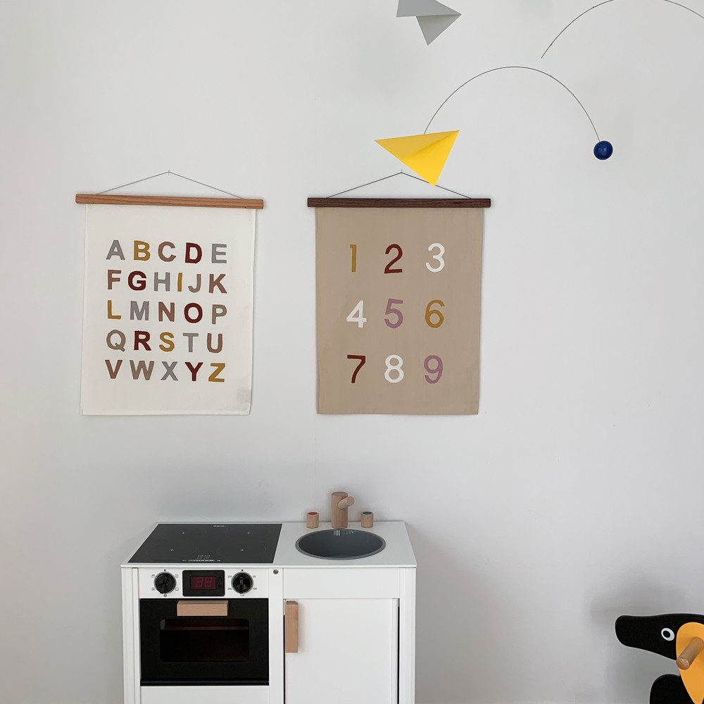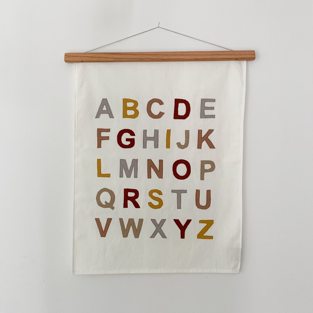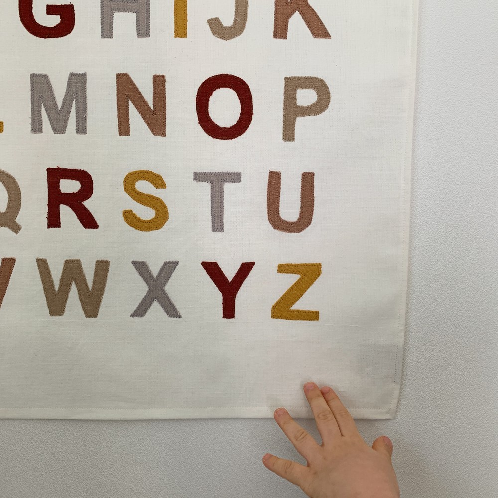 We love alphabet fabric poster + Oak frame